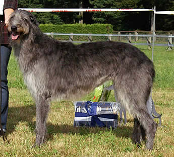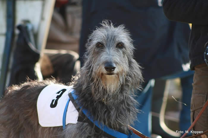 Meanwhile she has become succesful at shows ( amongst others the 2nd place in the strong "breeding class" at the GermanDeerhound Specialty under Dr S. Helps/GB , several awards for " beauty + performance " and also several really good coursings . She became 3rd within the females at the European Coursing Championship in 2011!