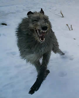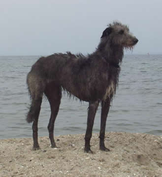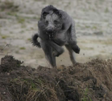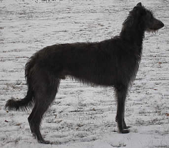 Das heisst, anatomisch so perfekt gebaut zu sein, um einen Hirsch auf lange Distanz und im eventeuell anspruchsvolen Gelände zu verfolgen, den Mut zu haben ihn zu stellen, klug genug zu sein, sich selber nicht in Gefahr zu bringen und zum Schluss auch stark genug zu sein, um so ein grosses Tier zu halten? Dieses zu testen ist in der heutigen Zeit schwierig, aber man muß sich vorstellen können, wie ein Deerhound in etwa aussehen sollte.