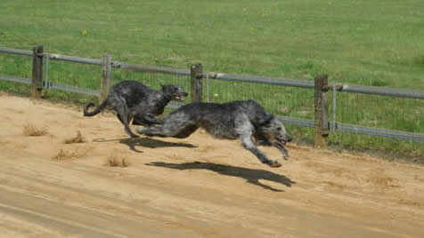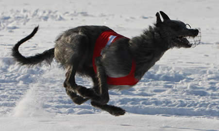 Die Leistungsfähigkeit eines Deerhounds bedeutet für mich, nicht nur seine Begeisterung beim Coursing oder Rennen zu zeigen. Es gibt genug unter ihnen, die den Sinn der "Plastik-Hasen" Verfolgung nicht wirklich verstehen, aber sie könnten und würden ganz sicher sehr überlegen jagen, wenn sie es dürften. Ich bin persönlich allerdings sehr erfreut, wenn sie die "Ersatz - Jagd" annehmen, auch wenn sie genau wissen dass es "so ein Hase" und nicht "so ein Hase" ist!